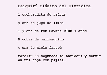 «Había bebido daiquiris dobles muy helados, de aquellos grandiosos daiquiris que preparaba Constante que no sabían a alcohol y daban la misma sensación al